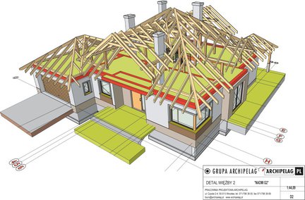 Dokumentacja Pracowni Projektowej ARCHIPELAG jest przygotowywana w programie ArchiCAD, dzięki czemu zawiera widoki elementów konstrukcji budynku w 3D.