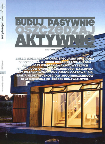 W najnowszym wydaniu magazynu „Świat Rezydencji Wnętrz&Ogrodów”, w artykule „Buduj pasywnie, oszczędzaj aktywnie” ekspert Pracowni Projektowej ARCHIPELAG, arch. Mariusz Jaworski opowiada o koncepcjach budownictwa pasywnego i energooszczędnego.