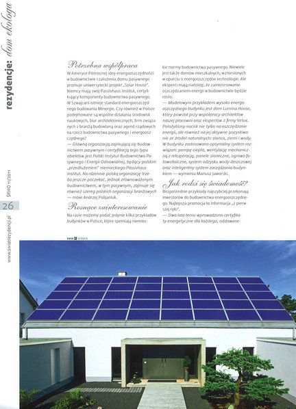 W artykule jako modelowy przykład energooszczędnych rozwiązań występuje LUMINA HOUSE – dom, który powstał przy współpracy architektów Pracowni Projektowej ARCHIPELAG oraz ekspertów firmy VELUX. Więcej szczegółowych informacji o projekcie znajdą Państwo na stronie: www.domy21.pl oraz http://pl-pl.facebook.com/PracowniaARCHIPELAG