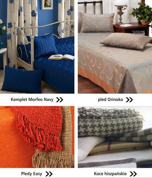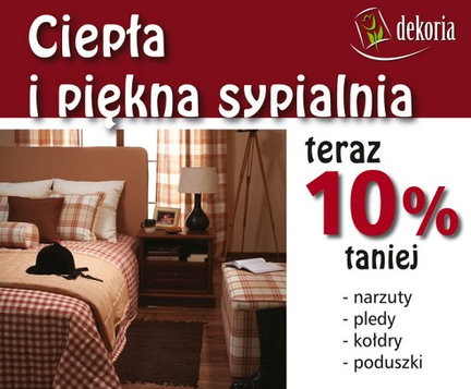 Nie zapomnij o właściwym klimacie w Twojej sypialni! Dekoria poleca eleganckie pledy oraz wysokiej jakości, pikowane w pasy lub w kratkę, narzuty na łóżka. W standardowej ofercie mamy około 400 tkanin, z których szyjemy dwa rozmiary narzut. W internetowej szwalni możemy natomiast zamówić narzuty na wymiar.