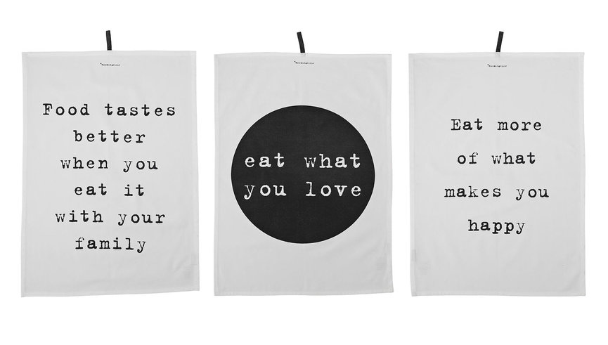 Wśród szerokiej oferty marki, znalazło się bowiem wiele produktów ozdobionych hasłami i dotyczącymi zarówno dnia codziennego, jak i wartości nadrzędnych. Kontrastowe grafiki przy zachowaniu uniwersalnej kolorystyki pozwolą dopasować dodatki od Bloomingville do wielu współczesnych wnętrz, a zarówno plakaty, jak i ścierki kuchenne, doniczki, a nawet serwetki, wywołają pozytywne emocje i uśmiech na twarzach swoich użytkowników. Doniczka z napisem I will survive, plakat przypominający o tym, że uśmiech jest najlepszym dodatkiem do stroju, czy serwetki nawołujące do ekologicznego trybu życia, poprzez oszczędzanie wody i... picie szampana(!) to tylko kilka przykładów mądrości życiowych z dodatków z katalogu tego duńskiego producenta.