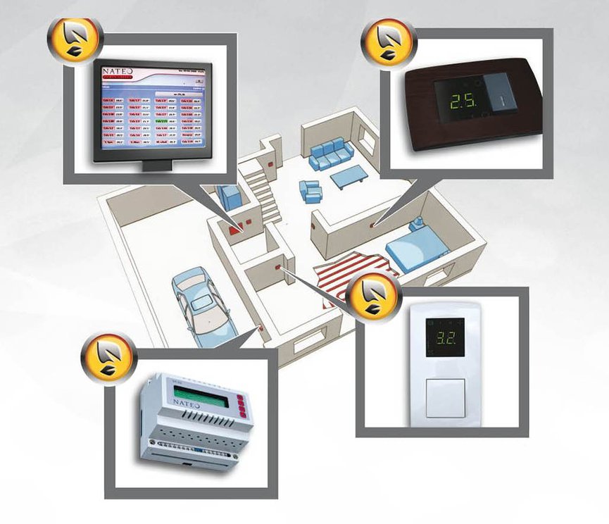 System Genesis dedykowany do pomp ciepła firmy Nateo umożliwia regulację temperatury w budynku oraz sterowanie dodatkowymi modułami, takimi jak klimatyzacja, co pozwala w łatwy sposób zapewnić optymalny komfort grzewczy.