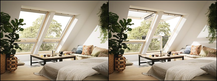 Po raz pierwszy balkon dachowy VELUX GDL będzie także dostępny w dwóch kolorach: drewno sosnowe pokryte bezbarwnym lakierem akrylowym lub pomalowane na biało. Oba wykończenia doskonale pasują zarówno do tradycyjnych, jak i nowoczesnych stylizacji wnętrz. Dla podniesienia komfortu użytkowania poddasza okno zostało również przystosowane do montażu różnego rodzaju rolet wewnętrznych i jest wyposażone w klapę wentylacyjną z filtrem powietrza o wydajności do 59 m3/h.