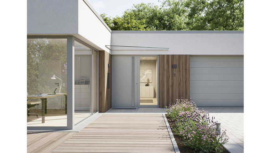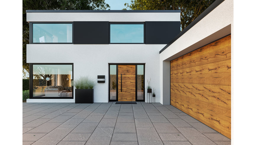 Promocja Hörmann to szansa na stworzenie atrakcyjnego wizualnie zestawu. Klienci mogą sięgnąć po kolory z grupy MatchColor, które gwarantują, że drzwi zewnętrzne i brama garażowa będą identyczne pod względem kolorystycznym. Inwestorzy, którzy poszukują wyrazistych i wyrafinowanych rozwiązań, mogą wybrać w komplecie bramę z powierzchnią Duragrain MatchDecor i drzwi w wersji MatchDecor. W tej opcji oba produkty mogą mieć jeden z czterech designerskich wzorów: Attic Wood, rdzawa patyna, dąb dziki lub cement, które nie tylko pięknie wyglądają, ale są również odporne na zarysowania, zabrudzenia i działanie warunków atmosferycznych. Innym ciekawym rozwiązaniem jest wybór bramy z segmentami o zróżnicowanym wyglądzie oraz drzwi z dopasowanymi do nich aplikacjami. Zależnie od wielkości bramy można wybrać jeden lub kilka segmentów o odmiennej powierzchni i taką samą powierzchnię zastosować jako aplikację w wybranych drzwiach aluminiowych. W ramach promocji Hörmann jest więc wiele opcji, które umożliwiają wybór efektownego kompletu stolarki.