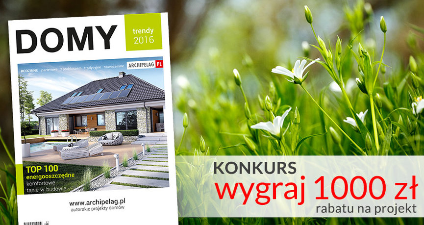 Zrób zdjęcie okładki najnowszego katalogu DOMY RODZINNE w miejscu, w którym spędzasz majówkę i prześlij je na adres konkurs@archipelag.plNagrodą w Konkursie jest rabat o wartości 1 000 zł do wykorzystania przy zakupie dowolnego projektu domu z kolekcji naszej Pracowni.
