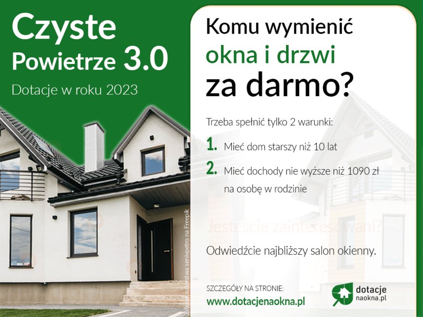 Z dotacji do wymiany stolarki w programie Czyste Powietrze skorzystać może każda rodzina, w której jedno z małżonków ma dochody nie wyższe niż 135 000 zł rocznie, a więc około 11 000 zł miesięcznie. W praktyce oznacza to, że ponad 90% polskich rodzin posiadających domy jednorodzinne może ubiegać się o co najmniej o podstawową dotację. Rodziny mniej zamożne, w których dochód na osobę nie przekracza 1090 zł miesięcznie, mogą ubiegać się o całkowite dotowanie takiej wymiany, praktycznie bez kosztów własnych. Aby wymienić okna, drzwi, a nawet bramę garażową za darmo, należy spełnić jedynie dwa warunki - być właścicielem lub współwłaścicielem budynku mieszkalnego starszego niż 10 lat oraz uzyskać w gminie zaświadczenie, że dochód w rodzinie nie przekracza 1090 zł miesięcznie na osobę – mówi Paweł Gregorczyk, koordynator Koalicji Termomodernizacji, która powstała, by uświadamiać zasady programu „Czyste Powietrze” i zachęcać do korzystania z dotacji.