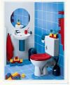 Umywalka o szerokości 40 cm przystosowana jest do montażu jednouchwytowej baterii stojącej jest w sam raz dla najmłodszych. Stojąca miska ustępowa lejowa o odpływie poziomym ma wysokość tylko 33 cm jest estetyczna i wygodna. Wyposażona w białą lub czerwoną deskę sedesową może wprowadzić ciepłą przyjazną atmosferę do tego wnętrza. Spłuczka wykonana z tworzywa sztucznego posiada armaturę z funkcją STOP. Dzięki takiemu rozwiązaniu dzieci mogą uczyć się nie tylko higieny ale również oszczędzania wody.
