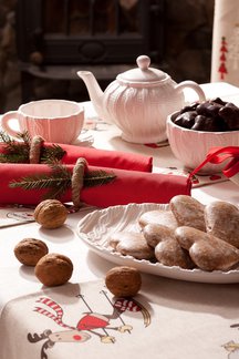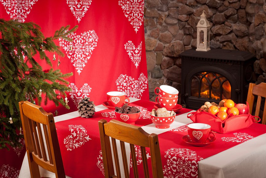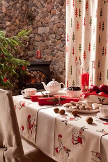 Gustowne ozdoby wykonane są z trzech rodzajów tkanin: żakardowych - pokrytych wzorem tkanym srebrną lub złotą nitką, satyny - ozdobionej tradycyjnymi motywami świątecznymi, a także naturalnych, lnianych. W świątecznej ofercie Dekoria.pl znajdziemy bogaty wybór tekstyliów m.in. urocze obrusy, zasłony czy poduszki dostępne w tradycyjnych bożonarodzeniowych odcieniach: czerwieni, bieli czy złocie.