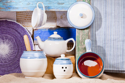 W kuchni za sprawą naczyń Greece przeniesiemy się do słonecznej Grecji, a niebiesko-biała kratka zastawy śniadaniowej sprawi, że każdy dzień będziemy zaczynać z uśmiechem. W białych, wiklinowych akcesoriach (kosze, taca, pojemnik na butelkę i na karafkę) przechowamy natomiast produkty spożywcze i uporządkujemy kuchenne drobiazgi.