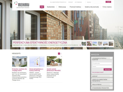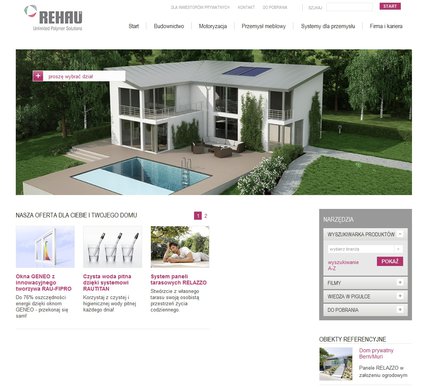 Wysokiej klasy ilustracje stanowią motyw wiodący już od strony startowej, poprzez strony działowe, aż po przeglądy produktów. Pojawiło się wiele nowych elementów, takich jak animacje, filmy i zdjęcia ciekawych obiektów. Nowością jest także wyraźne rozdzielenie stron biznesowych B2B od stron dla odbiorców końcowych B2C. Już dziś w dziale dla inwestorów prywatnych można znaleźć informacje o systemach okiennych i drzwiowych GENEO, ogrzewaniu i chłodzeniu płaszczyznowym REHAU oraz systemie tarasowym RELAZZO. Treści te będą stale poszerzane – już w niedalekiej przyszłości pojawią m.in. produkty z zakresu geotermii.