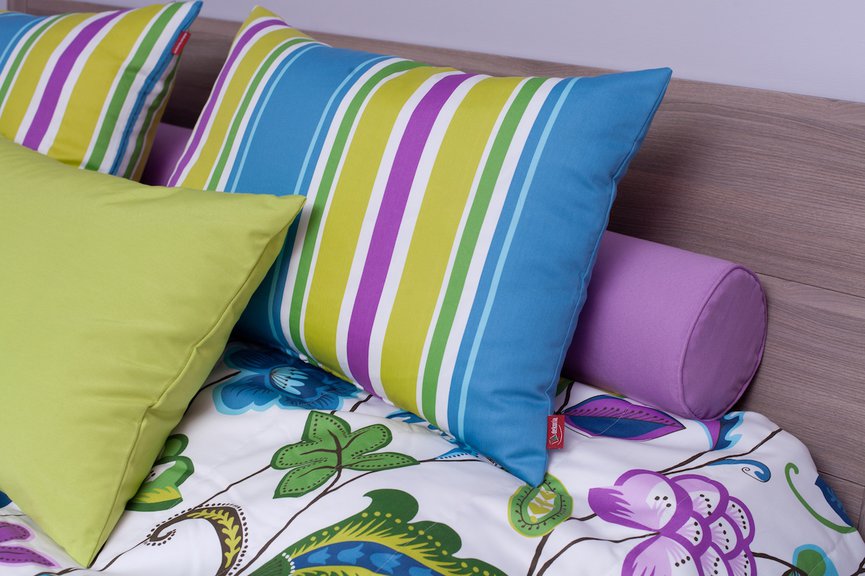 Jeśli chcemy mieć sypialnię wyrazistą i radosną, nie obejdzie się bez kolorów. Dlatego chłodny nowoczesny wystrój warto przełamać dodatkami w intensywnych odcieniach, takimi, jak tekstylia z nowej linii Fleur (Dekoria.pl). Kolorystyka wspomnianej kolekcji oscyluje pomiędzy zielenią, błękitem i pomarańczem, w odważnych, modnych odcieniach.