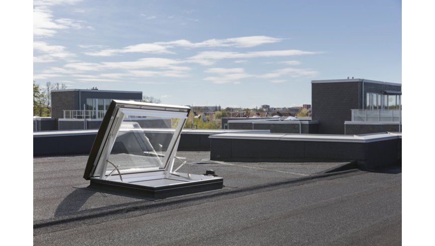 W projektowaniu nowoczesnych budynków z płaskim dachem architekci poszukują rozwiązań, które łączą funkcjonalność z estetyką oraz pozwalają świadomie kształtować przestrzeń światłem dziennym. Nowe elektryczne okno wyłazowe VELUX CXU otwiera przed architektami możliwości tworzenia jasnych przestrzeni w obiektach, w których wykorzystywane są wyłazy. Na co dzień, gdy wyłaz nie jest używany do celów serwisowych, pełni funkcję źródła naturalnego światła, dzięki temu architekci mogą w pełni wykorzystać potencjał światła dziennego jako integralnego elementu projektu.