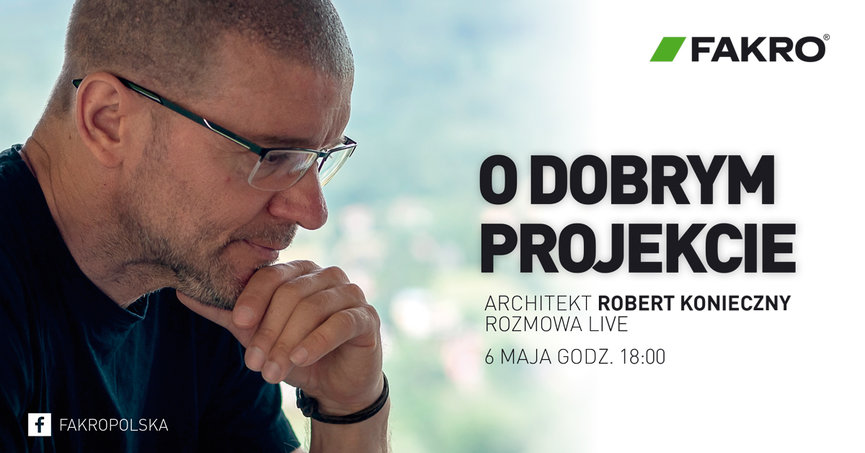 Jeżeli chcesz zadać pytanie w tej rozmowie, które związane jest z projektowaniem domów teraz i w nowej przyszłości, wpisz je w komentarzu pod wydarzeniem na facebook FAKRO. Wybierzemy najciekawsze pytania i zadamy je Robertowi Koniecznemu podczas Live, który odbędzie się 6 maja (środa) o godzinie 18:00.