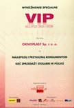 Celem konkursu VIP Najlepsze Okna i Drzwi jest wyłonienie innowacyjnych rozwiązań z zakresu stolarki otworowej. W tym roku odbyła się już 6 jego edycja. Eksperci docenili w niej najnowszy produkt OKNOPLAST – okno Winergetic Premium Passive, przyznając mu nagrodę w kategorii energooszczędne luksusowe okno PVC. Firma otrzymała też wyróżnienie specjalne za najlepszą i przyjazną konsumentom sieć sprzedaży stolarki w Polsce.