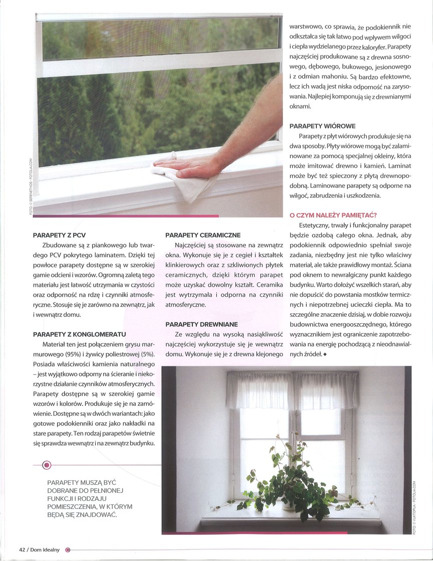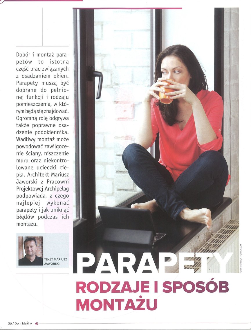 Zachęcamy do lektury bieżącego numeru Idealnego domu, w którym znajdą Państwo cenne porady oraz wiele inspirujących pomysłów, a wśród nich wartościowy komentarz naszego architekta Mariusza Jaworskiego, na temat rodzajów parapetów i ich poprawnego montażu.