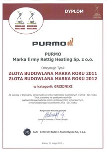 Badanie wśród firm wykonawczych w sektorze budowlanym zostało przeprowadzone w pierwszym kwartale 2012 roku na próbie odrębnie dobranej dla każdej z 20 grup asortymentowych materiałów budowlanych. Łącznie próba badawcza Budowlanej Marki Roku 2012 wyniosła około 2000 firm wykonawczych. Respondenci wskazywali m.in.: marki budowlane najwyższej jakości, marki budowlane o najlepszej relacji cena do jakości oraz marki budowlane najchętniej wybierane. Kolejny rok z rzędu marka Purmo była wskazywana jako najwyżej ceniony produkt i nagrodzona 1. nagrodą w kategorii grzejników.