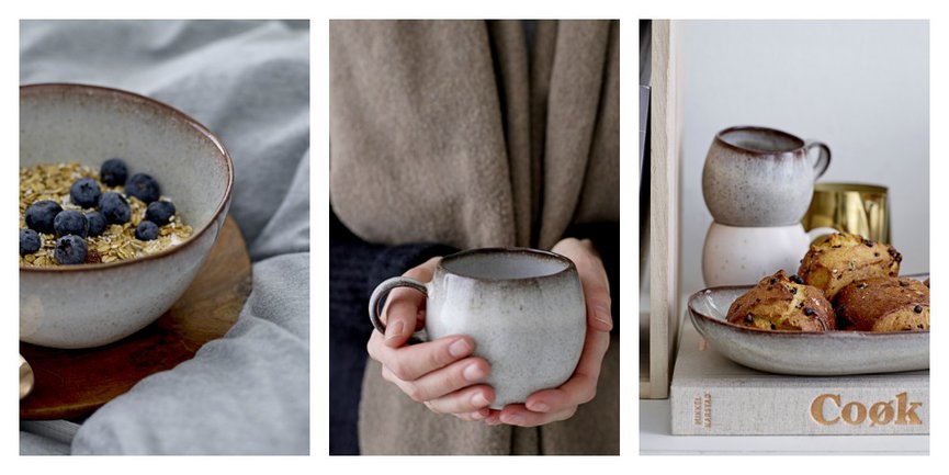Kolekcja Sandrine to wyjątkowo klimatyczna kolekcja naczyń, wykonanych ze szkliwionej lub matowej ceramiki. Wszystkie elementy kolekcji wykonane zostały ręcznie, a co za tym idzie charakteryzują się licznymi 'nierównościami' i to zarówno jeśli chodzi o kolorystykę, wzór, kształty jak i wymiary. Kubki, talerze i misy z kolekcji mają również miłą w dotyku powierzchnię, co dodatkowo zwiększa przyjemność płynącą z ich użytkowania. Rustykalny charakter tej spokojnej linii naczyń ma za zadanie przenieść użytkownika nad śródziemnomorskie wybrzeże. W miejsca, w których nie istnieje pośpiech i hałas. W miejsca w których żyje się w zgodzie z naturą, gdzie celebruje się wolne chwile, jedzenie, picie i małe przyjemności...