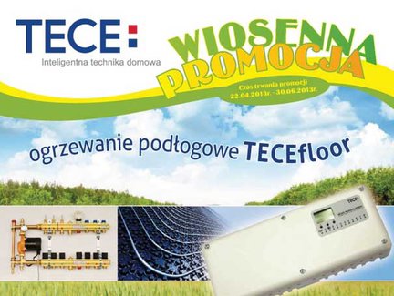 Promocja firmy TECE rozpoczęła się 22.04.2013 i, z uwagi na niesłabnące zainteresowanie nią klientów firmy TECE, nie zakończy się w czerwcu, ale potrwa aż do końca września 2013 roku. Oferta skierowana jest do inwestorów i wykonawców, którzy w okresie trwania akacji zamówią jeden z wybranych modeli rozdzielaczy ogrzewania podłogowego TECEfloor wraz z modułem głównym. Bogata paleta produktowa firmy TECE z pewnością spełni oczekiwania najbardziej wymagających, a profesjonalna odzież umożliwi instalatorom komfortową pracę.