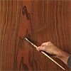 Jeżeli efekt drzewa tekowego nadal pozostaje niezadowalający należy dokonać poprawek przy użyciu pędzla ze sztywnym włosiem albo płaskiego pędzelka do malowania linii.
