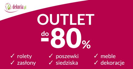 W dniach od 2 do 15 czerwca 2015 r. Dekoria.pl wprowadza promocję na wybrane produkty z oferty internetowego sklepu www.dekoria.pl. Artykuły objęte promocją „-80% taniej” znajdziemy w specjalnej zakładce o nazwie outlet. Taniej kupimy m.in.: zasłony, firany, rolety rzymskie, poszewki na poduszki czy siedziska. Rabat dotyczy także detali dekoracyjnych takich jak: ceramika, ramki na zdjęcia, świeczniki i wiele innych. Poza gotowymi produktami w outlecie znajdziemy również kupony tkanin, które znajdują się na liście bestsellerów Dekoria.pl.