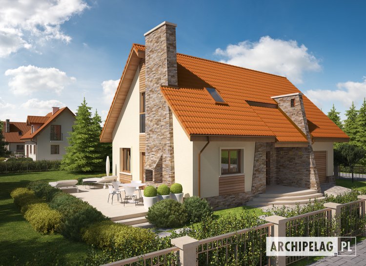 Projekt Basia jest jednym z niewielkich, kompaktowych domów, które stanowią znakomitą alternatywę dla mieszkań w mieście. Dzięki charakterystycznie zaprojektowanym kominom pokrytym efektowną okładziną kamienną ten urokliwy dom w każdym otoczeniu będzie zauważalny.
