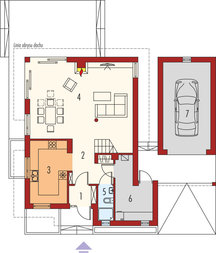 - Wyraźne rozdzielenie stref budynku – dziennej, nocnej i gospodarczej