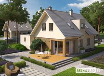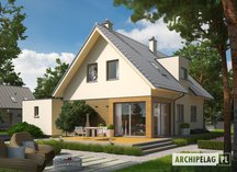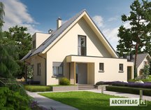 Dom Tiago G1 (wersja A) imponuje swoim atrakcyjnym wyglądem zewnętrznym. Interesująca bryła budynku z ciekawie zaakcentowaną strefą wejściową harmonijnie łączy się z ascetyczną bielą tynku, tworząc elegancką kompozycję całości. Elewację ogrodową wzbogacono okładziną drewnianą, która podkreśla przytulny charakter rekreacyjnej strefy tarasu. Charakterystycznym elementem architektury budynku jest zadaszony łącznik, który w oryginalny sposób integruje dom z garażem. We wnętrzu czeka na domowników przestronny układ pomieszczeń z czytelnym podziałem stref. Tiago G1 (wersja A) spełni oczekiwania rodziny, która ceni nowoczesne połączenia i wygodne rozwiązania funkcjonalne.