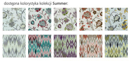 Tkaniny i produkty z najnowszej kolekcji Summer pozwalają kreować niezwykle oryginalne, nowoczesne wnętrza. Orientalny design, modna kolorystyka i najwyższa jakość tkanin żakardowych tworzą wysmakowaną kombinację idealną do wystroju luksusowych wnętrz w stylu loftowym. Zestawienie subtelnego, kwiatowego wzoru z fantastycznymi, kolorowymi zygzakami tworzy idealny duet  i nadaje wnętrzom nutę ekstrawagancji.