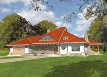 "Frida" to jeden z projektów ARCHIPELAGU w stylu południowym - prosta w konstrukcji, parterowa (z poddaszem do późniejszej adaptacji), harmonijnie komponująca się w wiejskim krajobrazie oraz wśród dużej ilości zieleni. Rozkład wnętrza można zmienić w bardzo prosty sposób dzięki niewielkiej liczbie ścian nośnych. Dom ma ok. 150 m2 powierzchni użytkowej, a dodatkowe 50 m2 można uzyskać po adaptacji poddasza.