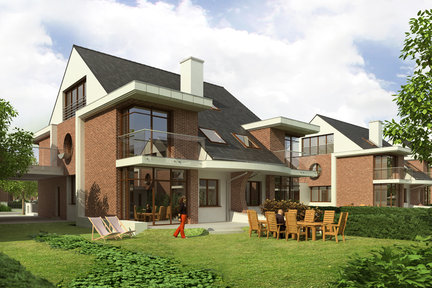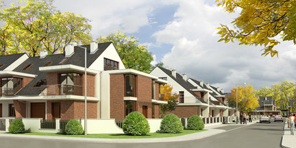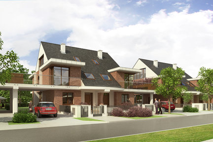 Prezentowany projekt to budynki jednorodzinne wolno stojące jedno- i dwulokalowe oraz w zabudowie szeregowej z lokalami usługowymi. Część zabudowy szeregowej (12 segmentów) będzie wyposażona w garaże jednostanowiskowe. Większość osiedla (38 segmentów) będą stanowić domy dwulokalowe z garażami lub wiatami garażowymi. W dachach prezentowanych budynków rozmieszczono wykusze o dużych, narożnych przeszkleniach, przykryte stropodachem. Część ogrodowa jest rozczłonkowana i między budynkami segmentu tworzy wewnętrzne dziedzińce. Wyraźnie wydzielone zostały strefy: wejściowa, dzienna, nocna oraz gospodarcza z garażem. Kolorystyka domów jest spokojna, w tonacjach ciepłych (dachówka w kolorze grafitowym; tynk w kolorze białym lub kremowym; elementy elewacji, kominy i cokół z cegły klinkierowej lub okładziny klinkierowej; balustrady tarasu i balkonu - szklane lub z elementów metalowych (metaloplastyka)). Inwestycja będzie powstawać równocześnie z infrastrukturą techniczną osiedla oraz budową dróg.