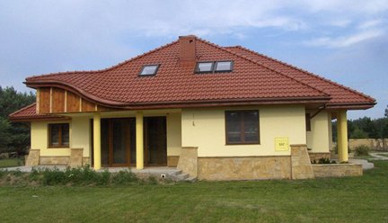 "Sandra" to projekt domu parterowego z użytkowym poddaszem, idealnego dla 5-6-osobowej rodziny, z wbudowanym dwustanowiskowym garażem. Dom zwraca uwagę klasyczną, acz niebanalną bryłą. Przez przeszklenia o wyjątkowo rozległej powierzchni od strony ogrodu do środka wpada bardzo dużo naturalnego światła rozjaśniającego wnętrze reprezentacyjnego salonu z kominkiem. Obok kuchni zaprojektowano praktyczną spiżarnię, ponadto w strefie dziennej zaplanowano pokój gościnny. Na parterze znajdują się także dwie sypialnie i duża łazienka. Poddasze przeznaczono na strefę nocną - z sypialniami dla dzieci, łazienką i strychem.