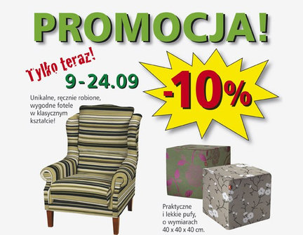W dniach 9-24 września trwają promocje w Dekoria.pl. Unikalne, ręcznie robione wygodne fotele w klasycznym kształcie, praktyczne i lekkie pufy, tapicerowane skrzynie i wygodne worki do siedzenia. Zapraszamy także do korzystania z porad eksperta projektowania wnętrz na Forum ARCHIPELAGU - "Dekoria radzi!". Eksperci Dekorii odpowiedzą na wszelkie Państwa pytania związane z wystrojem wnętrz - doborem tkanin i kolorów.