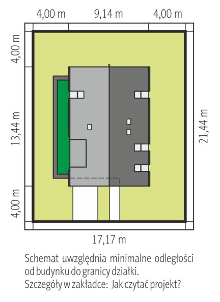 - Minimalne wymiary działki 19.79 x 21.44 m