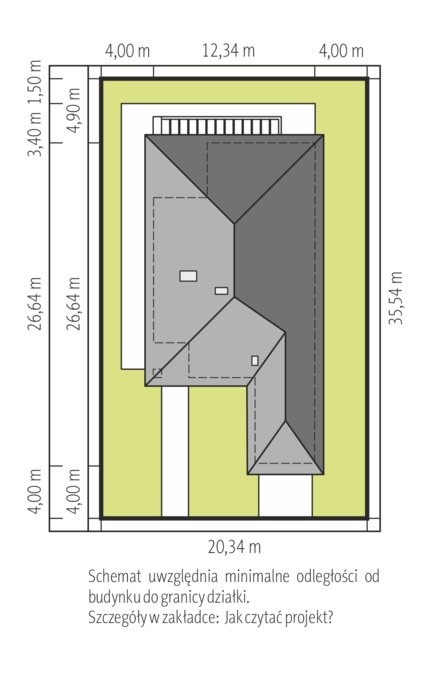 - Minimalne wymiary działki 20.34 x 35.54 m