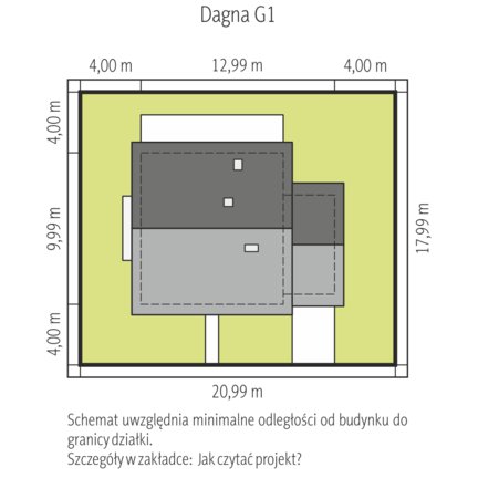 - Minimalne wymiary działki 17.39 x 17.99 m