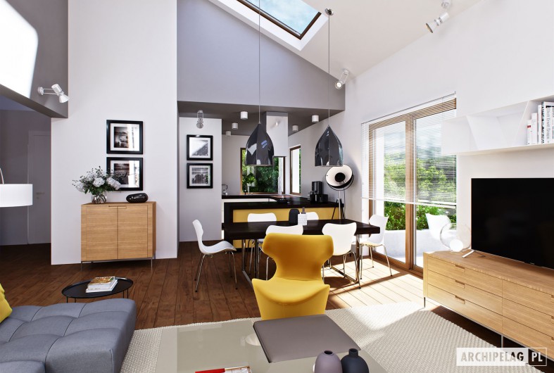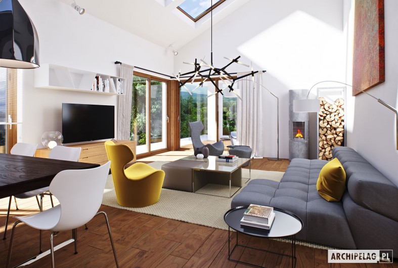Daniel III G2 to nowoczesny dom o wnętrzach w których jasność jest jednym z głównych dowodzących. Obiekt wyposażony jest w dużą ilość okien, również połaciowych - pełniących istotną rolę doświetlenia poddasza. Klasyczna forma obiektu z jasną elewacją i ciemnoszarym dachem dwuspadowym oraz funkcjonalnymi, przestronnymi pomieszczeniami są ważnymi zaletami Daniela. Jednak obok aspektu estetycznego równie ważny jest aspekt ekonomiczny. Daniel III G2 to dom tani w utrzymaniu. O niskie rachunki dbają m.in. ściany nośne i działowe wzniesione z energooszczędnych bloczków H+H o grubościach 12 i 24 cm, które swój pozytywny wpływ zaznaczają już na etapie budowy - w szybkości i prostocie przeprowadzenia prac murarskich.