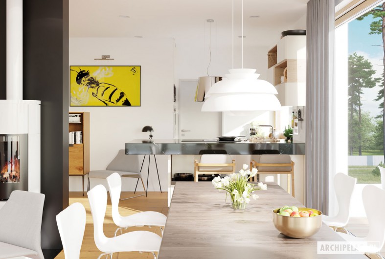 Garaż usytuowany w bryle budynku wymaga dobrej izolacji ścian i sufitu, które przylegają do części mieszkalnej oraz ciepłych drzwi łączących go z domem. Musimy ograniczyć też straty energii, do których dochodzi przez płytę bramy. Najlepszym rozwiązaniem będzie tu brama LPU 67 Thermo zbudowana z izolowanych termicznie segmentów o grubości 67 mm i wyposażona w podwójne uszczelki wargowe na ich łączeniach oraz w podwójną uszczelkę progową. Ucieczce ciepła z domu zapobiegną natomiast energooszczędne drzwi wejściowe Thermo 65. Te stalowe drzwi z płytą o grubości 65 mm wypełnioną pianką PU to nie tylko wysoka termoizolacyjność, ale też dobre wyposażenie przeciwwłamaniowe oraz bogaty wybór eleganckich wzorów.