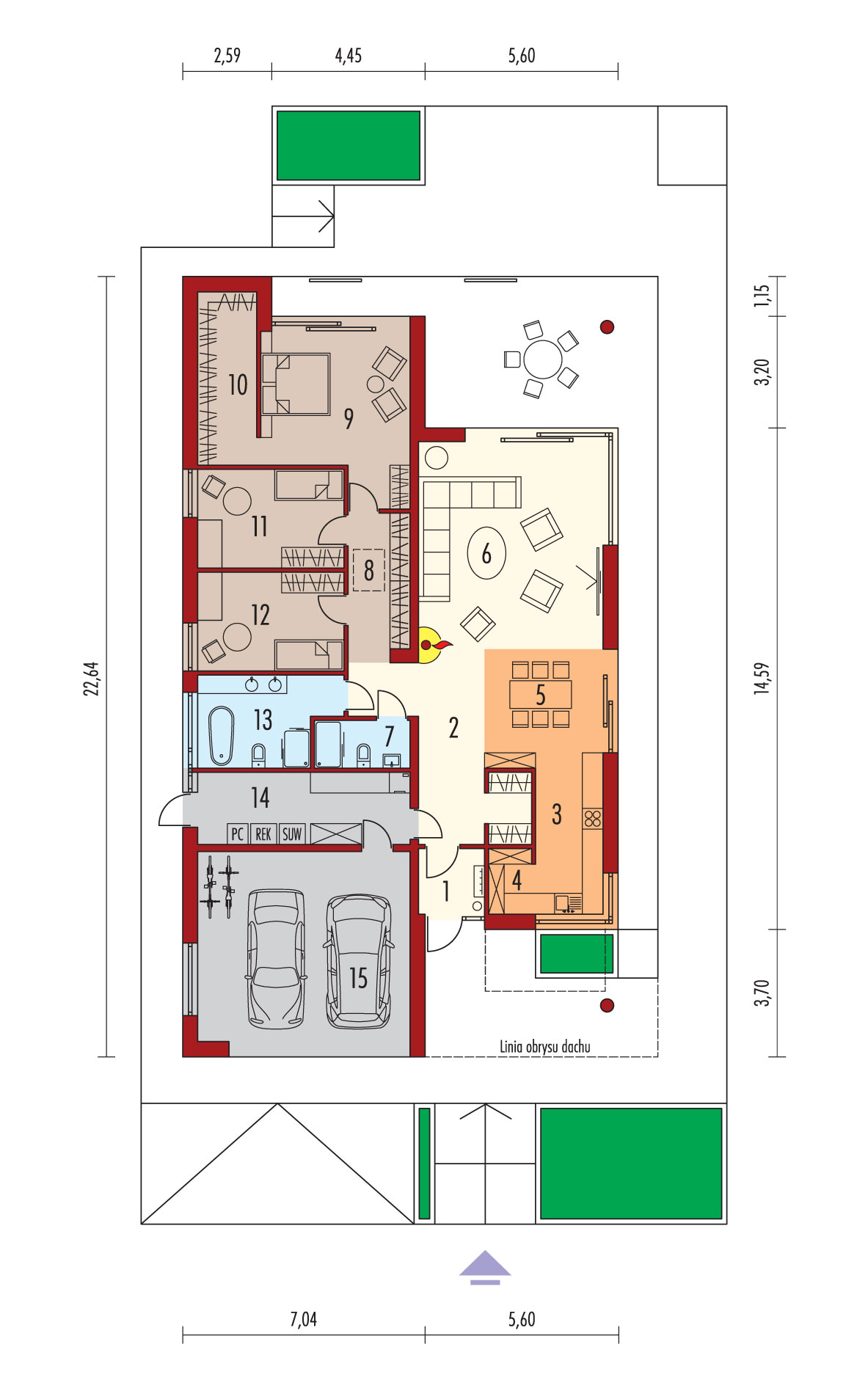 • Minimalne wymiary działki 20.64 x 30.64 m
