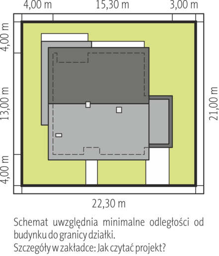 • Minimalne wymiary działki 22.30 x 21.00 m