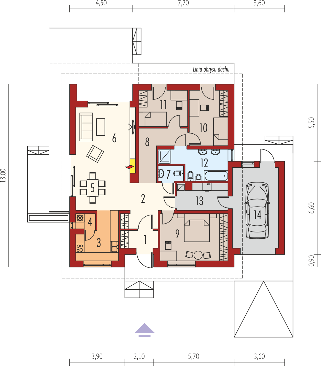 • Wymiary budynku 15.30 × 13.00 m