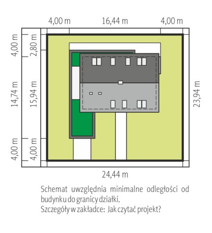 - Minimalne wymiary działki 24.44 x 23.94 m