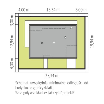 - Minimalne wymiary działki 21.44 x 20.34 m