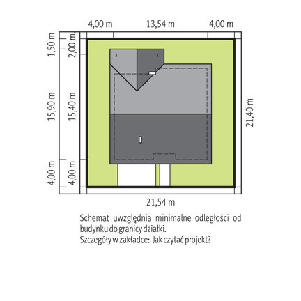 • Minimalne wymiary działki 21.54 x 26.35 m