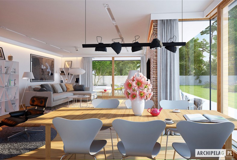 Projekt przeznaczony głównie dla osób szukających nowoczesnych i ciekawych form wykonania, oraz funkcjonalnych rozwiązań zagospodarowania przestrzeni. Tanita G2 to dom energooszczędny i przyjazny środowisku. Oprócz dużych, rozświetlonych pomieszczeń, zaletą projektu jest przestronny dwustanowiskowy garaż, wkomponowany w bryłę domu. Kompozycję uzupełnia taras z desek kompozytowych ProDeck, w kolorze orzechowym.