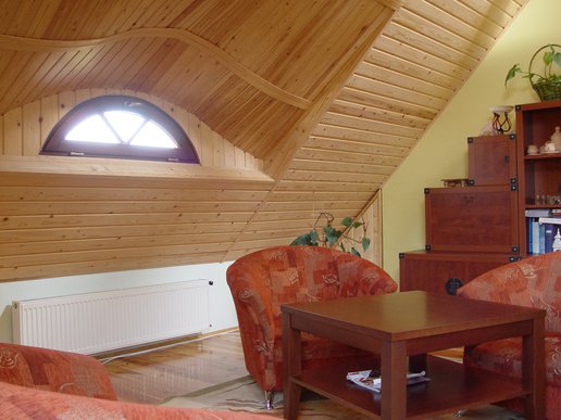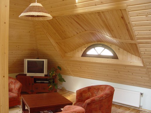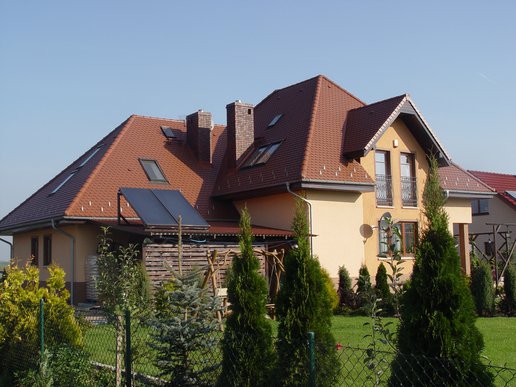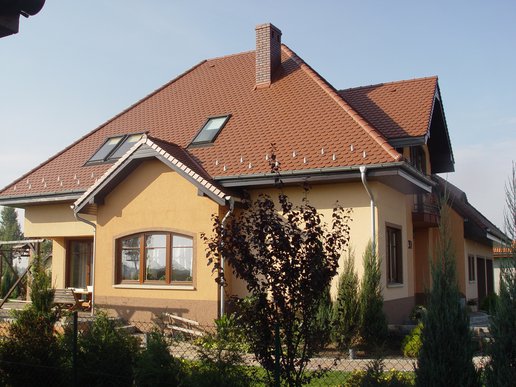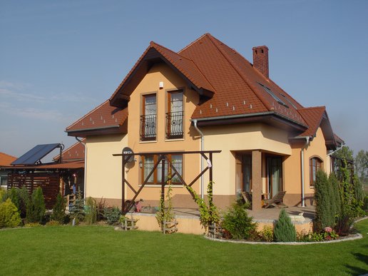"Adela" wyróżnia się stromym, kopertowym dachem z lukarnami i pięknym "wolim okiem" zaplanowanym nad garażem. Właściciele prezentowanej realizacji, która powstała w okolicach Oleśnicy, niedaleko Wrocławia, wyjątkowo starannie zadbali o drewnianą stolarkę okienną i nowoczesne ogrzewanie, wnętrza zaś samodzielnie zaprojektowała pani domu, z czego niezmiernie dumny jest jej mąż. Cały parter stanowi wyjątkowo funkcjonalnie zaplanowaną strefę dzienną. Nad wejściem do domu, na poddaszu, znajduje się balkon dostępny z przestronnej sypialni rodziców z dużą garderobą. W strefie nocnej poddasza zaplanowano także łazienkę i dwie odrębne sypialnie. Tuż przy przytulnym pokoju nad garażem, w którym rodzina lubi spędzać wieczory, wygospodarowano miejsce na niewielką pralnio-suszarnię. W stosunku do oryginalnego projektu wprowadzono niewiele zmian: zwiększono liczbę okien połaciowych, podniesiono ściankę kolankową, a garaż zmieniono z jedno- na dwustanowiskowy. Dzięki dużym przeszkleniom w salonie mieszkańcy i ich goście mają doskonały widok na piękny, wypielęgnowany ogród.