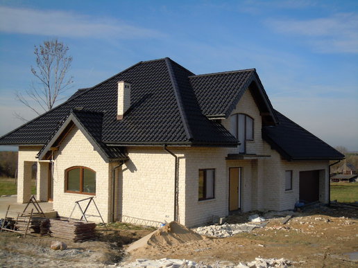 Inwestorzy wprowadzili kilka zmian do projektu. Nieznacznie podniesiono ściankę kolankową, dzięki czemu powiększono powierzchnię pomieszczeń na poddaszu, a pokoje pod skosami zrobiły się bardziej ustawne Zmieniono wielkość i lokalizację okien, zmniejszono ilość okien połaciowych oraz zlikwidowano wole oko nad garażem.