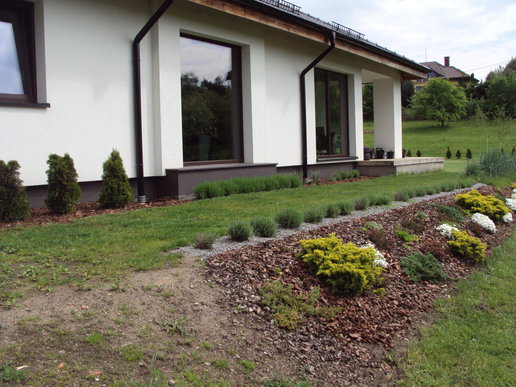 Parterowy dom Glen olśniewa swoją klasyczną elegancją. Wnętrze wyróżnia ergonomiczny i niezwykle funkcjonalny charakter. Częściowo zadaszony taras dostępny z salonu stwarza możliwość wypoczynku zarówno w upalne, jak i deszczowe dni. Inwestorzy wykonali kilka zmian w projekcie, m.in. zmienili lokalizację i rozmiar okien, przesunęli kominek, zrezygnowali ze spiżarni oraz ścianki działowej, zyskując otwartą przestrzeń. W wyciszonej strefie nocnej znajdują się trzy sypialnie oraz garderoba. Glen to doskonała propozycja dla współczesnej rodziny, która marzy o przytulnych i stylowych wnętrzach.