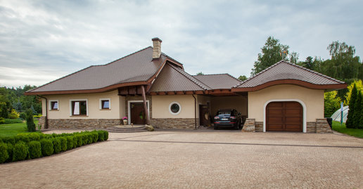 "Henryk" to okazała rezydencja, która przykuwa uwagę finezyjną formą i ciekawymi rozwiązaniami architektonicznymi. Właściciele prezentowanej realizacji, która powstała w 2008 roku w okolicach Łodzi, są bardzo dumni z efektu końcowego. Nie wprowadzili niemal żadnych zmian do projektu, poza kształtem bramy garażu.