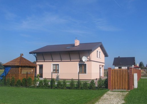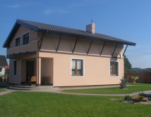 "Kuba" choć zaliczany do domów tradycyjnych nie jest typowym przedstawicielem tej grupy projektów. Aby to jeszcze uwypuklić inwestorzy zdecydowali się na pewne zmiany w stosunku do projektu oryginalnego: m.in. zrezygnowali z balkonu nad frontowym wejściem i spadzistego dachu nad garażem.