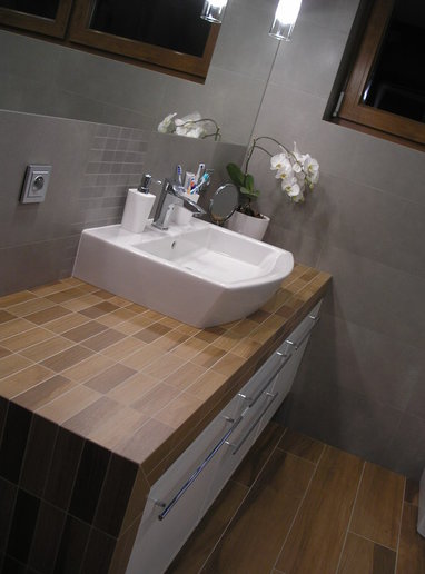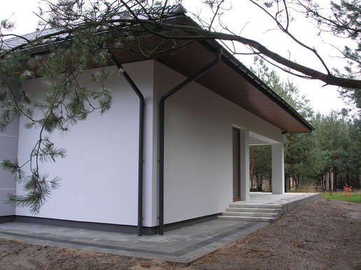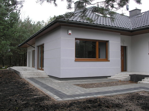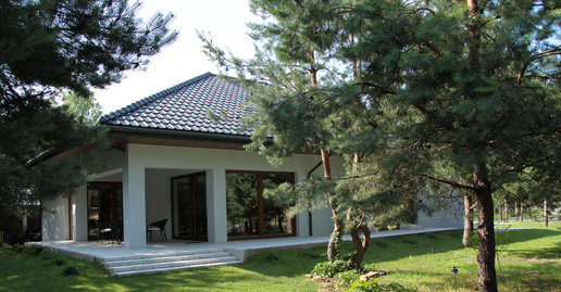 Prezentowana realizacja domu Liv 3 G2 powstawała w latach 2012-2015. Dom został wybudowany na działce położonej w lesie. Inwestorom zależało na zachowaniu oryginalnej, zgrabnej formy budynku, dlatego zmiany zostały ograniczone do minimum. Zlikwidowano wąskie boczne przeszklenia w jadalni i salonie oraz niewielkie okienko w spiżarni. Przestrzeń spiżarni została włączona do kuchni otwartej na salon i jadalnię. W największej sypialni właściciele usunęli ściankę działową, a w miejscu garderoby pojawiła się duża szafa. Ponadto zmieniono bieg schodów. W pomieszczeniach strefy dziennej zaplanowano ogrzewanie podłogowe. Z elewacji zniknęła okładzina drewniana, w miejscu której pojawiły się modne szare pasy.